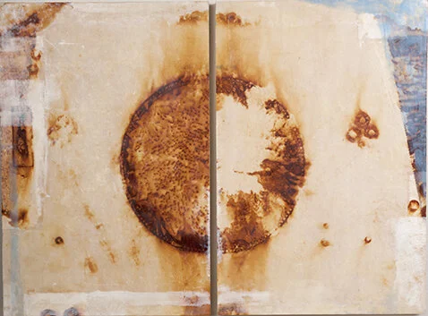 Artifacts, Encaustic and Mixed Media, Diptych, (2) 24” x 36” x1.5” wood panels